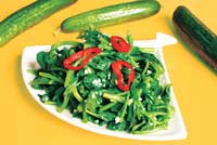 制作: 制作时一定要注意先将番杏菜清洗净,然后用滚水略烫一烫,沥尽水后放入盘中;再将香醋、食盐、蒜泥和少许香油调成汁,淋在放在盘中的番杏菜上,略腌一会儿食用,口味正好。