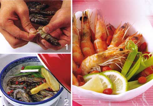 【材 料】沙虾200克、枸杞15-20粒、葱1棵、姜3片休闲 居 编 辑