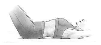 A、仰面躺在地上,用一个枕头或者垫子放在你的髋关节和臀部下面作为额外的支撑。抬起你的腿,弯曲你的膝盖,把你的腿在你的脚踝处交叉。把你的手放在你的脑后,胳膊肘外翻。