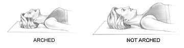 注意一下你已经轻轻的抬起了你的盆骨,放平了你的背部,但是你的下背部的地方仍然有一些轻微的中立的曲线。就如右面所示。注意你的中心的拉长,记住这个感觉。