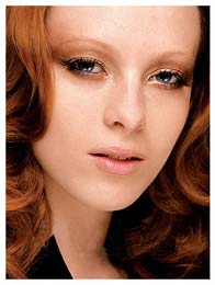 流行要点:最近几年来横扫千军的古铜质感粉底妆容终于有了淡出的趋势,正在逐步转化为对晶莹白嫩的自然肤色的追求,粉底也喜欢薄薄的带有闪光的质地。随之而来眼部和唇部的点缀趋势也要求更多的闪亮或晶莹质地。