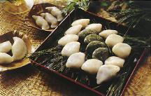 2、将大米用水泡开,捞出来控干后磨成粉,然后倒入热盐水和面。把它做成20克左右圆扁面团,然后放进绿豆馅,做成松糕。