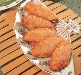 做 法: 1、鸡翼冲净抹干,加腌料拌匀,腌1小时,取出沥干汁料;把蘸料中的干葱及蒜头剁碎,南乳压烂。2、将生粉抹匀鸡翼,放热油内用中火炸至金黄色及熟透,取出滤净油分,盛碟。3、烧热1汤匙油,先将蘸料中的干葱、南乳和蒜茸爆香,再加入其他汁料煮滚,伴鸡翼吃。