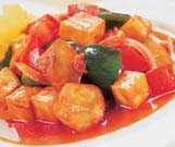 原料: 茄子500克,青椒250克,番茄120克,洋葱50克,蒜瓣25克休 闲居编 辑