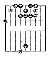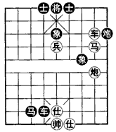 [学习要点提示]红首着以车杀中象,是因为有马后炮的杀着。红第4回合弃车是一种吸引战术,不仅发挥了中兵和马的作用,而且使黑将定位,最后以“闷宫”杀棋。在杀王时,弃子吸引是较为多见的手段。