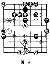 “蓬莱阁杯”全国象棋男子精英赛江苏徐天红对上海林宏敏激战至29回合形势如图A。双方子力相差无几,红方车马兵双炮自中路和黑右侧发动攻势,明显占优。黑方目前可借先行之和兑炮吃中兵,缓和局势。实战中黑方误走进炮叫将,红方迅速集结兵力,马借兵力卧槽成杀。实战着法