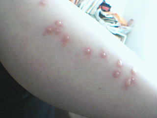>>>>>>>>提问应该不是水豆吧..因为小时候得过水豆.但是现在的水泡越来越多了..本来只是脚腕和小腿.现在慢慢往大腿上蔓延...症状是皮肤表面发红.非常痒.用手铙后..慢慢的变大发肿发热.又痒又痛.然后过一晚上形成了水泡...天呐.我好害怕..真的成了皮肤病了么?高人救救我呀..