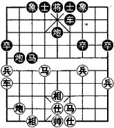 (棋例)1975年4月江苏、上海友谊赛中季本涵对胡荣华,弈至第19回合时的形势如图。双方以飞相局对左中炮布局演变而成。至此,红马捉炮,黑方出人意料地妙演“借尸还魂”之计,献