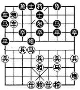 (棋例) 1985年全国团体赛,北京博光明对黑龙江王嘉良弈至第14回合时形势如图。双方是以仙人指路对中炮布局,经过13个回合的角逐,红方始终保持先行之利,各子活跃。红方抓住黑方3路象的弱点,施展“顺手牵羊”之计,取得胜利。实战着法如下:
