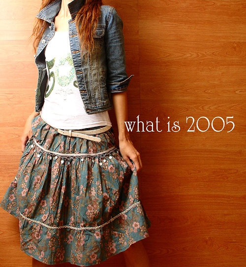 3.碎花及膝裙+牛仔外套+白色棉T,这样的搭配效果是什么?就是一个完美的由夏季到秋天的MM。