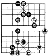 如图残局,黑方利用卧槽马、肋炮卒的攻势,运炮打将顿挫,简明取胜。着法黑先: