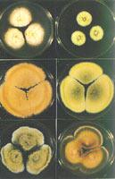 由于霉菌的菌丝较粗而长,因而霉菌的菌落较大,有的霉菌的菌丝蔓延,没有局限性,其菌落可扩展到整个培养皿,有的种则有一定的局限性,直径1-2厘米或更小。菌落质地一般比放线菌疏松,外观干燥,不透明,呈现或紧或松的蛛网状、绒毛状或棉絮状;菌落与培养基的连接紧密,不易挑取;菌落正反面的颜色和边缘与中心的颜色常不一致。