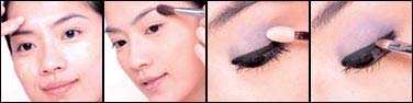4.再以深紫色眼影轻涂睫毛毛际处,由眼头朝眼尾描涂,利用眼线效果来收敛眼神。