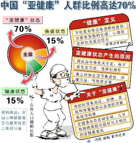 图表:中国“亚健康”人群比例高达70% (新华社发)