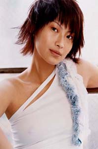 理发:请你的发型师将你的头发剪至肩上一两寸长,围绕着你的脸庞,从前额道颧骨的位置修剪出一圈刘海。然后请他用刮刀把与眉毛齐平处的头发修出象小束状的、蓬松的效果来。
