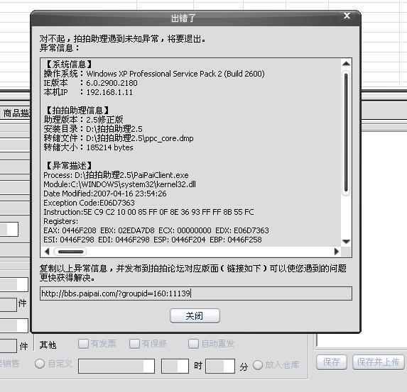 使用拍拍助理导入数据就出现图片上这情况,后来从新下了个拍拍助理 也还是这样.请问这是怎么回事? 我已经提问一次了,有个答案是:网络防火墙没有设置为允许拍拍助理使用网络。如果您运行了网络防火墙,请将网络防火墙设置为允许拍拍助理使用网络。 但是这答案不行,我防火墙一直都是处于关闭的,再说我的拍拍助理一直都能使用的就是昨天弄了一半不能使用了 出现图片上这情况 请求给个答案!