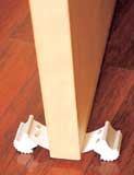 用安全门抵角,把它放在门下方的缝隙里,它两边的橡胶支撑块可以与地板产生很大的摩擦力。宝贝的力量不足以把门从它上面推动,这就免去了夹伤、磕碰的危险。