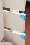 在有角的床头加上安全防护圆角,对于金属的床头可以用毯子或毛巾被等厚一些的织物把它包起来。经过这样处理,即使宝贝不小心碰上也不会受伤。