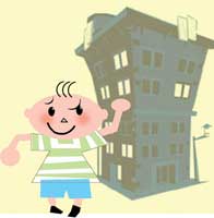 街对面有座空空的大楼,为什么里面没有人呢?看起来很神秘的样子,里面一定有很多很好玩的东西吧?(场景还可以设想为餐厅、宾馆、戏院、加油站等的洗手间等地方)