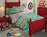 儿童床在色彩选择上最好以明亮、轻松、愉悦为选择方向,色泽上不妨多点对比色。绿色能引发宝贝对大自然的向往;红色会激起宝贝的生活热情;蓝色则是充满梦幻的色彩。宝贝们喜欢热烈、饱满、鲜艳的色彩,男孩的房间中可使用蓝、绿、黄等与自然界植物色彩相接近的配色方案,以此适应男孩热爱大自然的本色体系;女孩的房间则可以选择以植物花朵为主色的柔和色系对比,如浅粉、浅蓝、浅黄等。