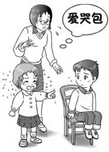 “我女儿都4岁了,还娇滴滴的,动不动就哭,如果说她‘那一点小事也值得哭吗’她反而会哭得更厉害,有时还一边哭一边在地上打滚。就连洗手弄湿了袖子这样的小事,只要说她两句,她也哭。给她洗澡,稍有不顺心也哭。有时看到她哭得那么伤心,我真觉得莫名其妙。在跟小朋友一起玩时,倒还能和睦相处,很少吵架。有什么办法能使孩子改掉爱哭的毛病呢?”
