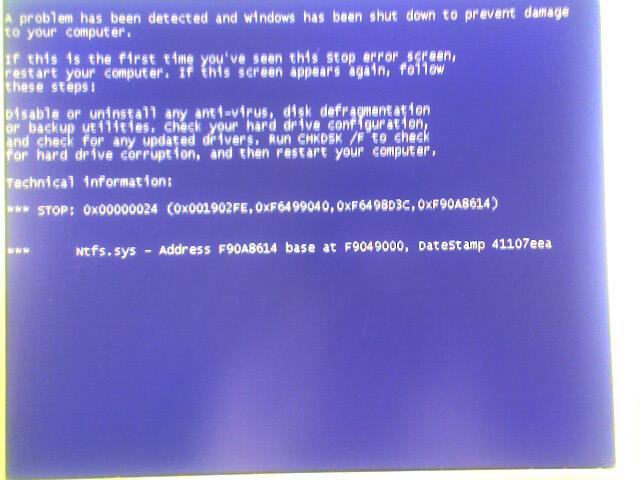 a problem has been detected and windows has been shut down to prevent damage to your computer